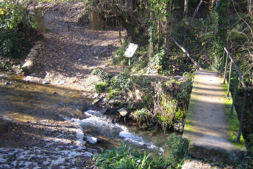 Aunque el sendero pueda hacerse en ambas direcciones, consideraremos ahora la parte de Galaroza, en la carretera Sevilla – Lisboa (N-433) junto a las antiguas instalaciones de la empresa Santa Teresa de Electricidad.