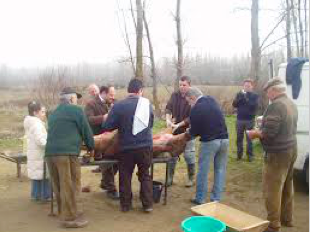 Y hablamos de una fiesta propiamente dicha, ya que la matanza congrega a nuestros familiares, vecinos, amigos y conocidos en torno a esta herencia romana que hemos sabido conservar hasta nuestros días. La época de matanzacomienza en un tardío noviembre y se extiende hasta el mes de febrero.